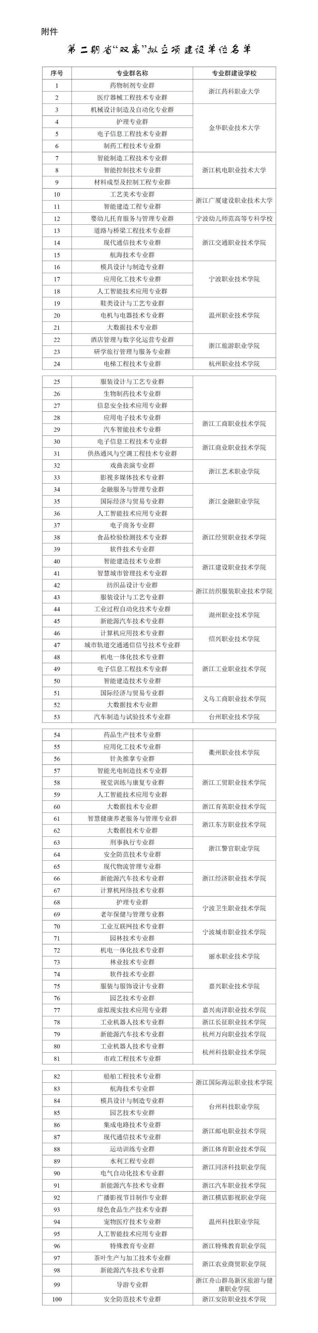 2月24日,浙江省教育厅发布《关于第二期省“双高”拟立项建设单位的公示》。48所高校的100个专业群,拟获推荐为第二轮“双高计划”建设单位。